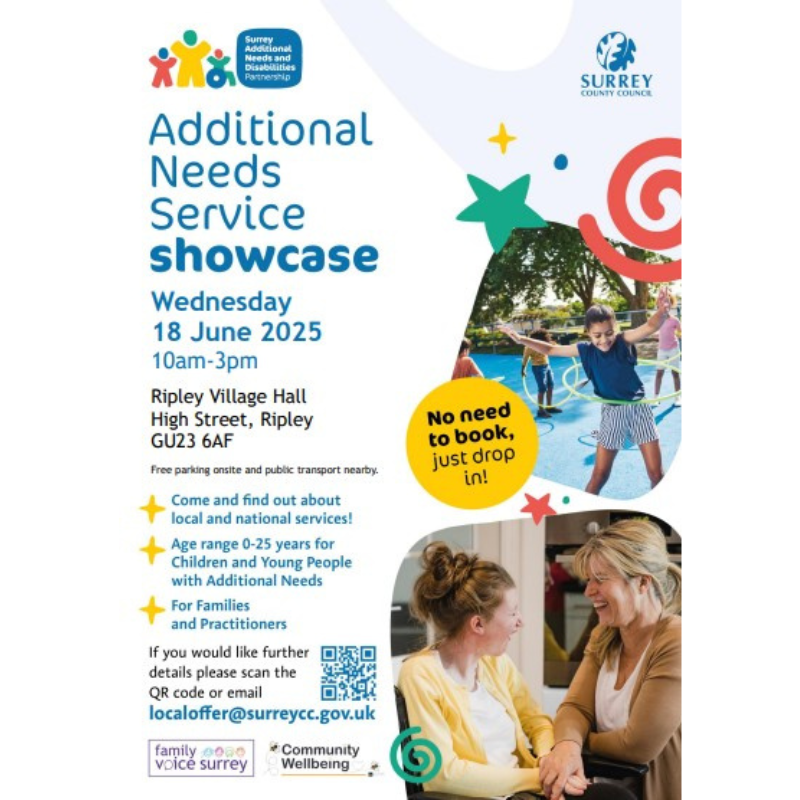 This is a free drop in event, so no need to book, and is organised by The Community Wellbeing team, in partnership with Surrey County Council’s Family Information Service (FIS), and Family Voice Surrey.