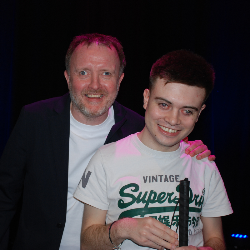 At the end of his set, the CYPS group were told to remain in their seats and when the hall had emptied, the group were invited onto stage to meet Chris McCausland himself! The group laughed and joked with Chris and had their pictures taken individually and as a group. He asked about their eye conditions and ages and hoped they had enjoyed the show.