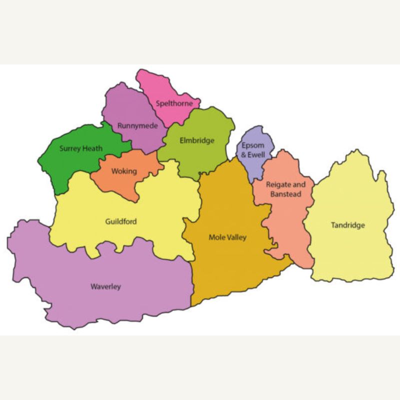 - East Surrey (Elmbridge, Epsom and Ewell, Mole Valley, Reigate and Banstead, Tandridge)