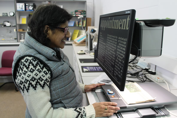 We prefer you to book a visit to the Resource Centre in advance so as to avoid disappointment, particularly as it can take an hour or more for an appropriate assessment, and have a hands-on look at items of interest. Visitors to the Resource Centre often come with their partner, friend, family escort or carer and they are very welcome to participate in the experience.