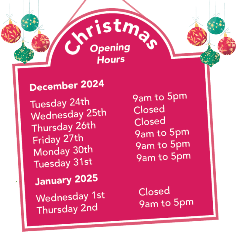 As we draw to the end of the year we would like to remind everyone of our opening hours over the festive season: