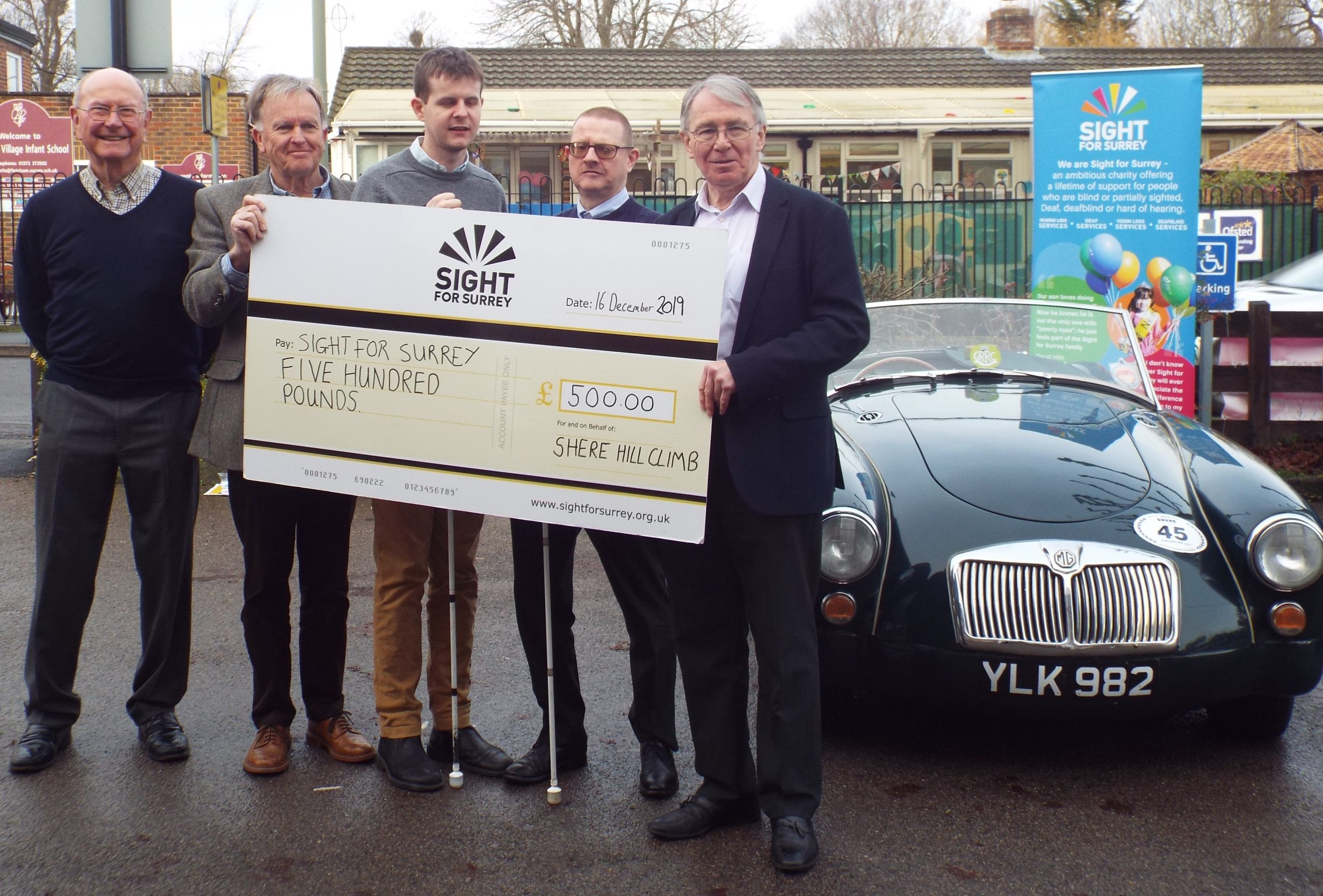 Local classic car rally, Shere Hill Climb, has donated a fantastic £500, to Sight for Surrey from its event last September. The money will go towards supporting people in Surrey who are blind, visually impaired (VI), Deaf, deafblind or hard of hearing.