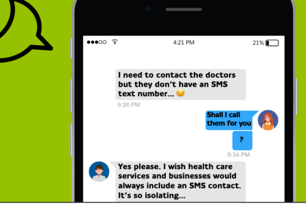 Including an SMS contact enables people who are hard of hearing or Deaf to communicate independently. It is important all businesses have this, and it is vital that health services provide an SMS contact and hearing loop for private and confidential conversations. Below a Coalition member shares their experience with their GP surgery.