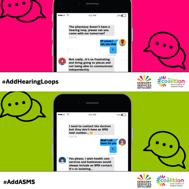 Sensory Services by Sight for Surrey and The Surrey Coalition for the Disabled People have joined forces to launch a campaign to raise awareness about the importance of including an SMS contact detail and hearing loop at establishments.